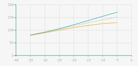| 蒸發(fā)溫度 | 制冷量+/-5% | 能耗+/-5% | 現(xiàn)在能效+/-5% | 氣體流速+/-5% | 能效+/-7% | ||||