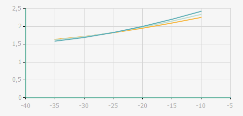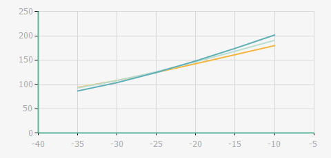 | 蒸發(fā)溫度 | 制冷量+/-5% | 能耗+/-5% | 現(xiàn)在能效+/-5% | 氣體流速+/-5% | 能效+/-7% | ||||