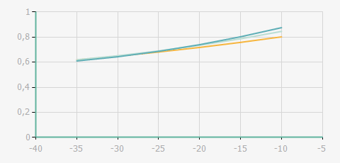 | 蒸發(fā)溫度 | 制冷量+/-5% | 能耗+/-5% | 現(xiàn)在能效+/-5% | 氣體流速+/-5% | 能效+/-7% | ||||