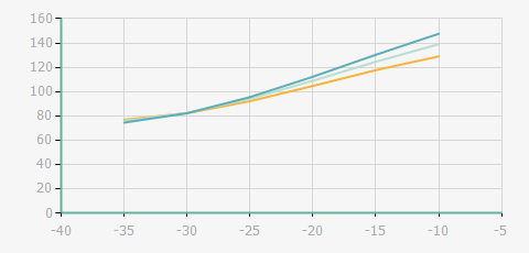 | 蒸發溫度 | 制冷量+/-5% | 能耗+/-5% | 現在能效+/-5% | 能效+/-7% | ||||