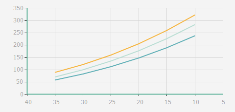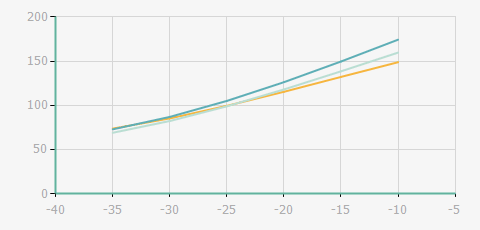 | 蒸發(fā)溫度 | 制冷量+/-5% | 能耗+/-5% | 現(xiàn)在能效+/-5% | 氣體流速+/-5% | 能效+/-7% | ||||